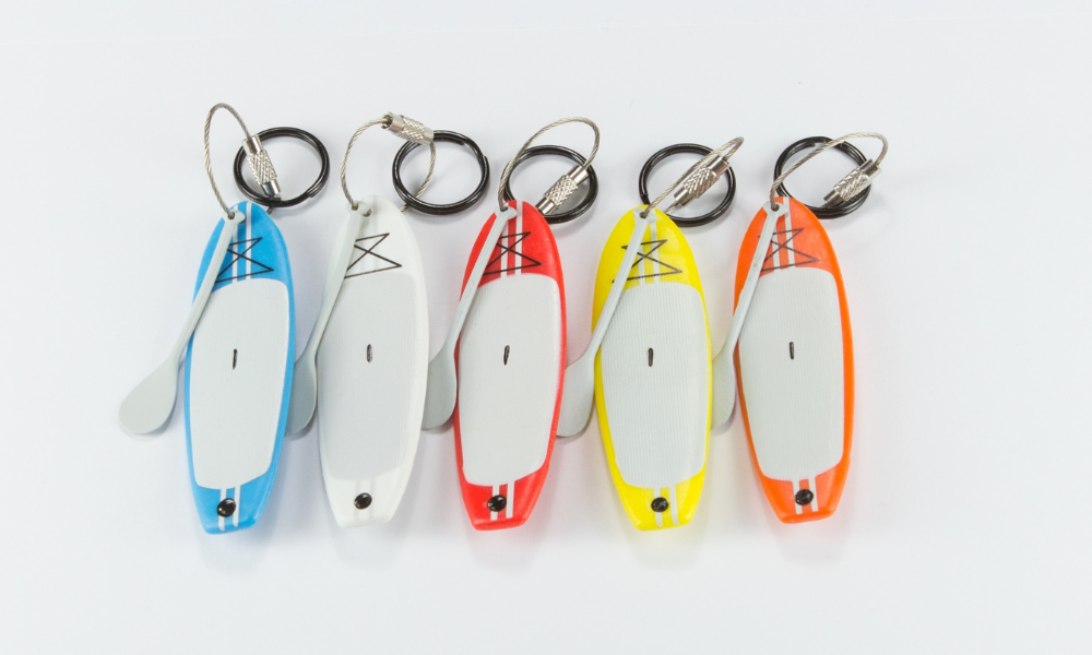 Hobkey has designed and crafted a detailed, durable stand-up paddleboard keychain/keyring, complete with a paddle. The stainless steel twist gate ring makes it easy to take on and off your keys, bag, or dry robe, making it easy to keep a piece of your passion with you at all times.
