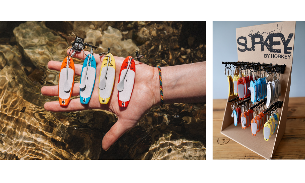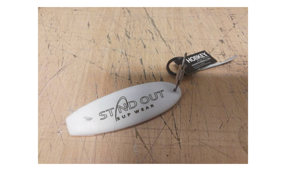 Hobkey has designed and crafted a detailed, durable stand-up paddleboard keychain/keyring, complete with a paddle. The stainless steel twist gate ring makes it easy to take on and off your keys, bag, or dry robe, making it easy to keep a piece of your passion with you at all times. Great as a gift or as a personal memento of a rental experience. Each keyring can be easily engraved with logos or text, making it ideal for activity centers or group adventures.